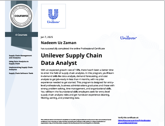 Unilever Supply Chain Data Analyst